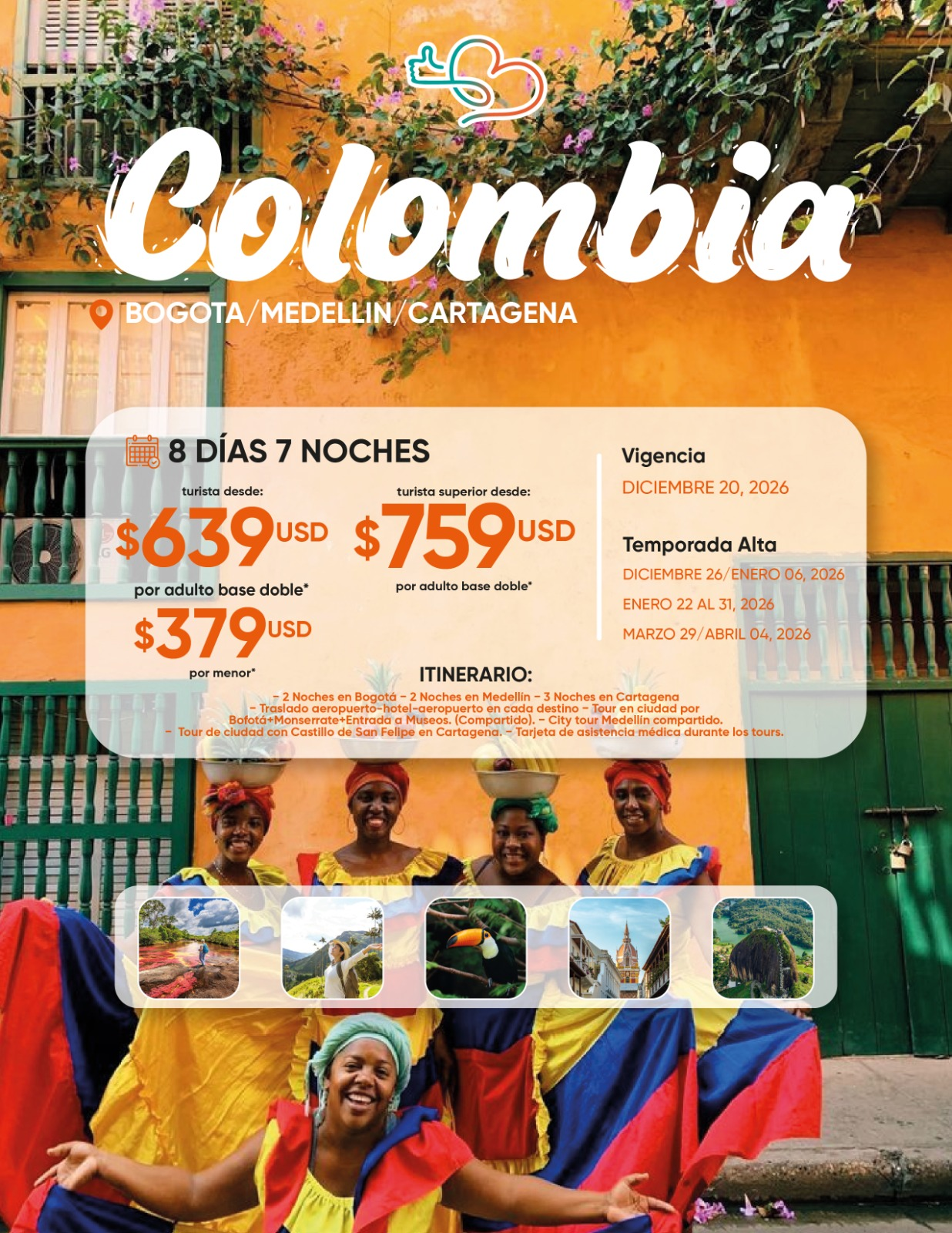 BOGOTA MEDELLIN CARTAGENA 8 DIAS 7 NOCHES